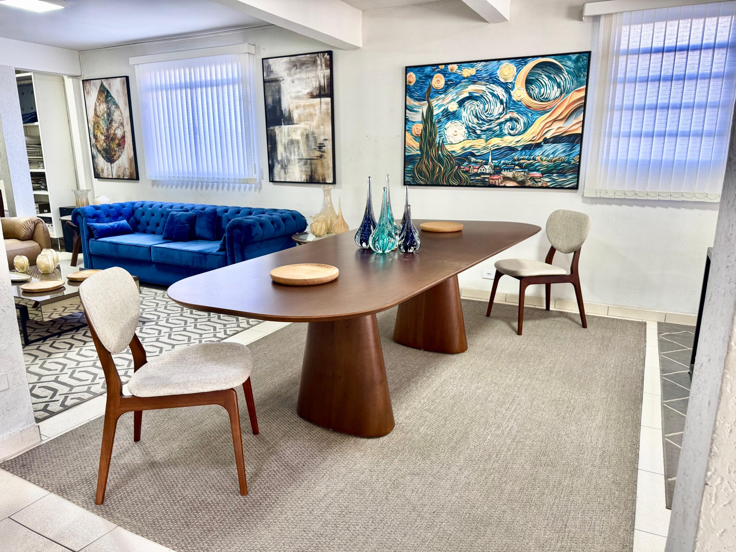 A harmonia entre mesa e cadeiras define o impacto visual da sala. Algumas estratégias: